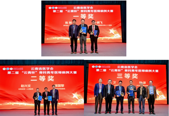 开幕式致辞完毕,举行了云南省医学会2025年第二届“云青杯”骨科青年医师病例大赛颁奖仪式。由马信龙教授、陆声教授、舒钧教授、熊鹰教授、周中英教授、常敏教授分别为获奖者颁奖。