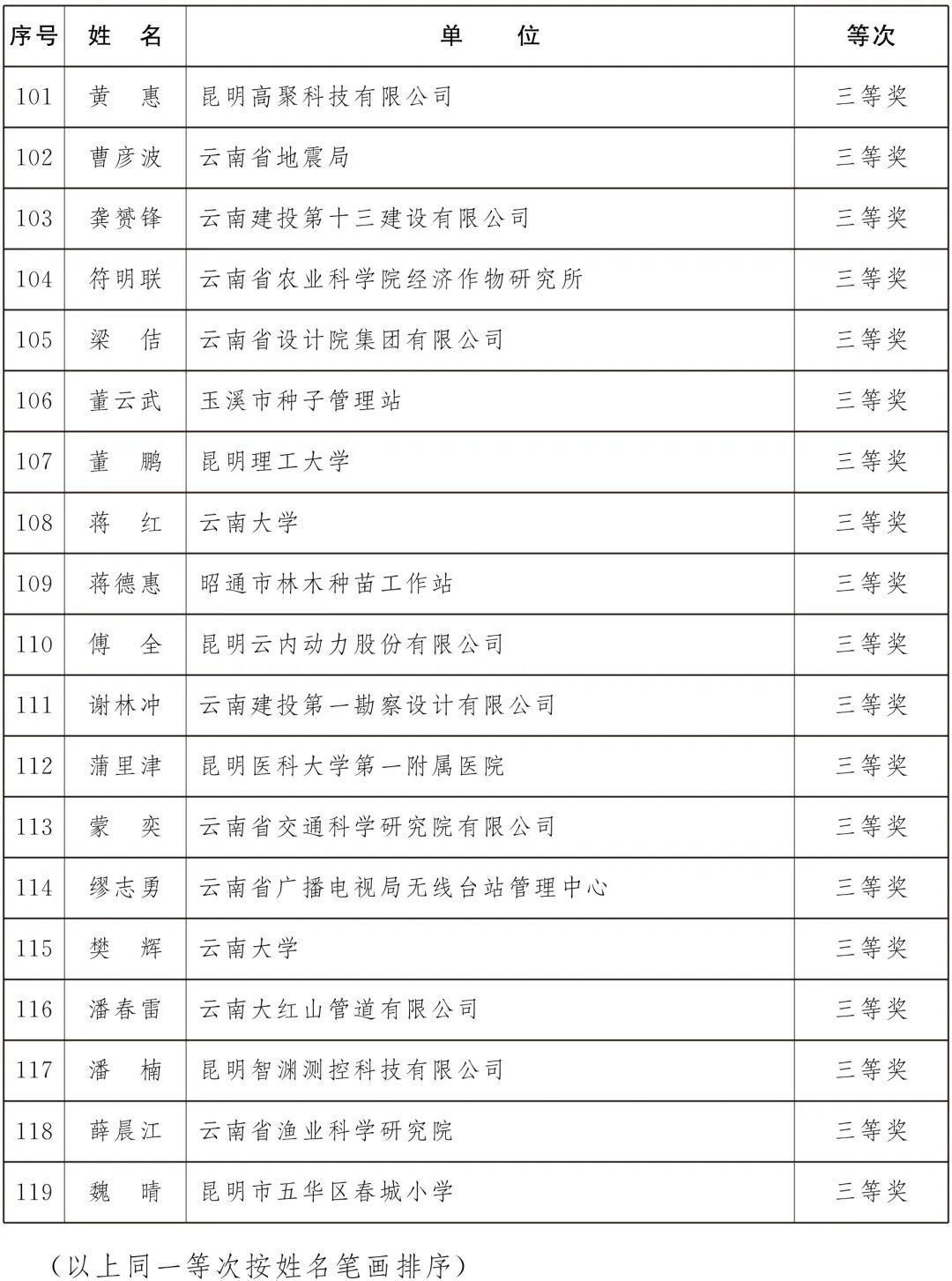 为认真贯彻落实党中央、国务院决策部署,坚定实施人才强省战略,推动新时代专业技术人才队伍、高技能人才队伍高质量发展,充分激发人才创新活力,大力营造识才爱才敬才用才环境,激励广大人才为全面建设社会主义现代化国家作出新的贡献,省人民政府决定,王蕾等119人为2022年度云南省有突出贡献优秀专业技术人才;马庆锐等100人为2022年度享受云南省政府特殊津贴人员。