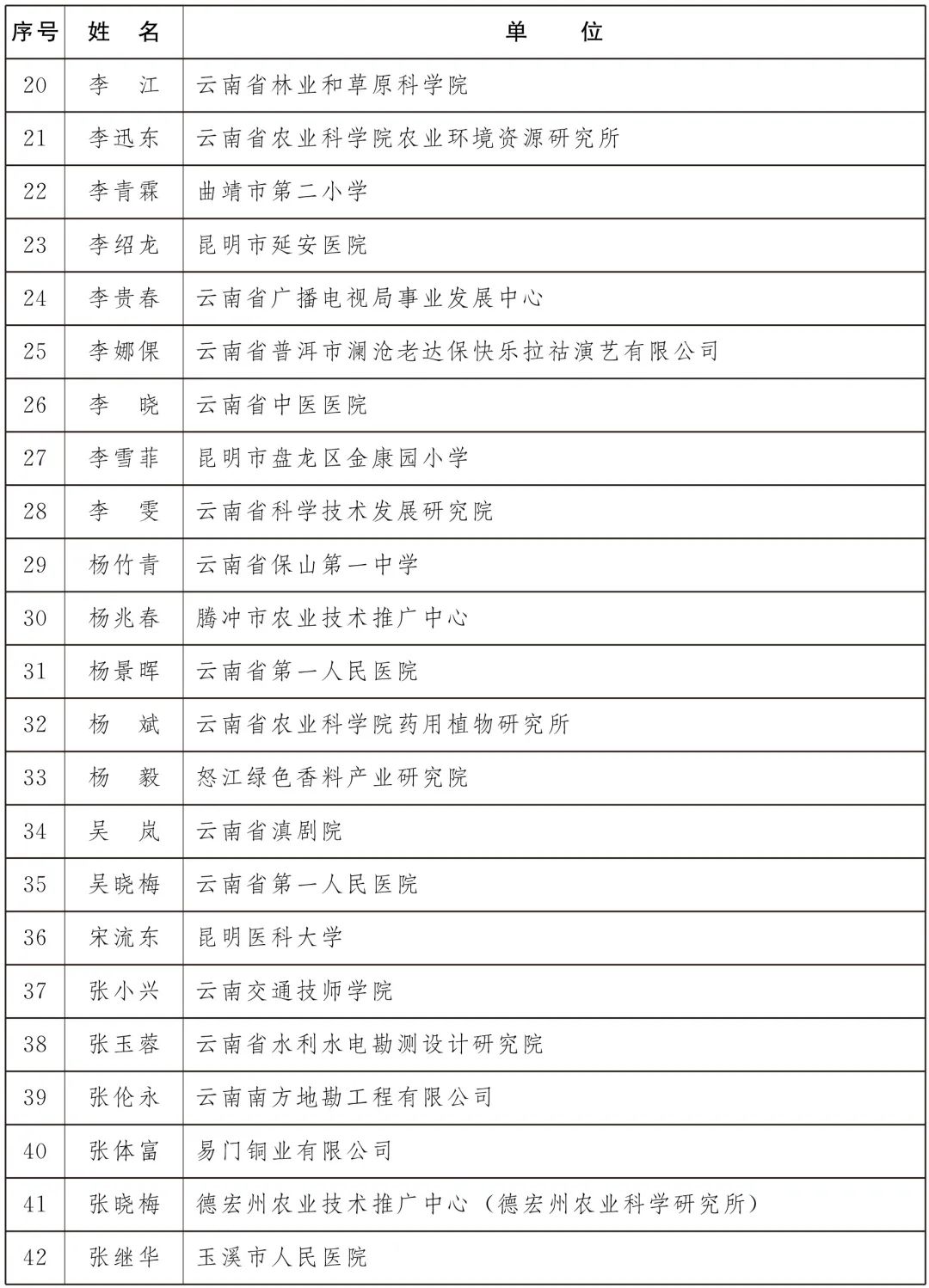 1.2022年度云南省有突出贡献优秀专业技术人才名单