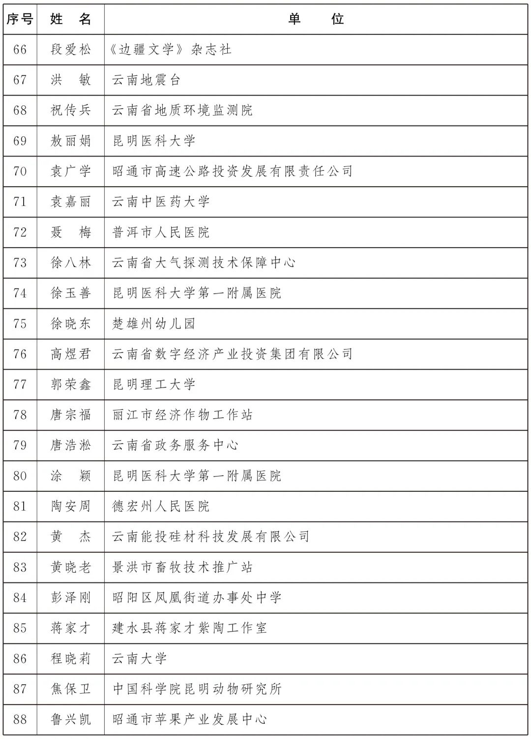 2022年度云南省有突出贡献优秀专业技术人才和享受云南省政府特殊津贴人员名单公布